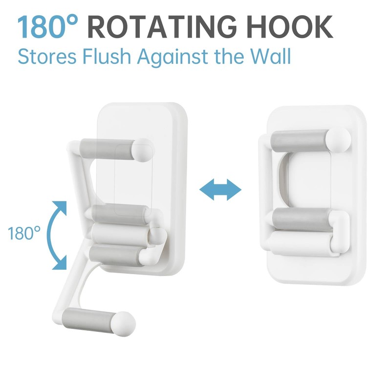 - Space-Efficient: The mop and broom holder wall mount can rotate 180°, making it convenient for saving space and ensuring it is not accidentally touched when people pass by.