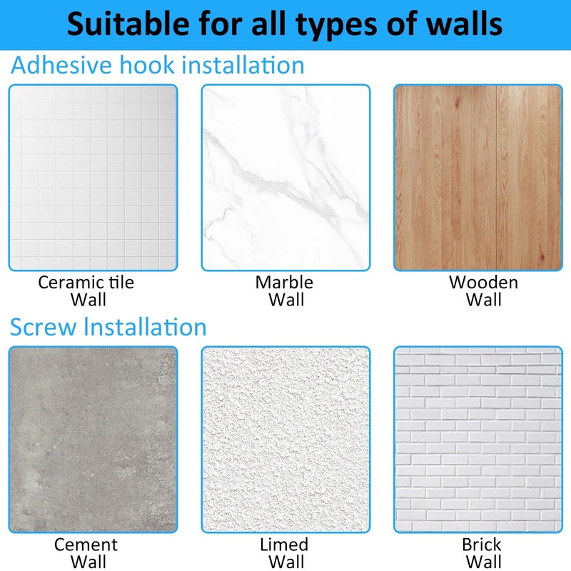 - 【Two Installation Methods】Comes with all mounting hardware, the glove rack can be mounted on the wall or cabinet door by adhesive hooks or screws, allowing you to choose the installation method according to the wall.