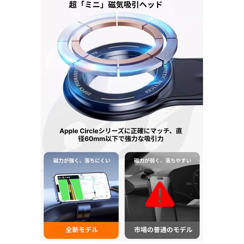 NIICOLO Smartphone Holder, Car Magnets, Magsafe, Car Magnets, Super Strong Magnetic Force (22 N55 Magnets), Portable Holder, Free Adjustment, One-Handed Operation, Easy Installation, Mobile Phone