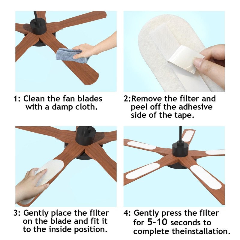 - Easy to Install & Replace: Simply stick easily on top of fan blades! (1-3 months after installation) When it needs to be changed, just take the filter off the magic tape on the back and replace with new filters to keep the fresh air flowing in your home!