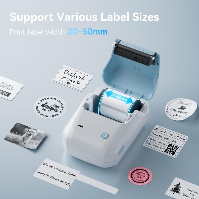 - 【2 Inch Label Maker】NIIMBOT B1 label maker machine's label width range of is 20mm-50mm(1-2 inch). The effective printable width is 48mm. NIIMBOT B1 label maker machine come with a label tape, 2x1.18 inch (50x30 mm),230pcs/Roll.