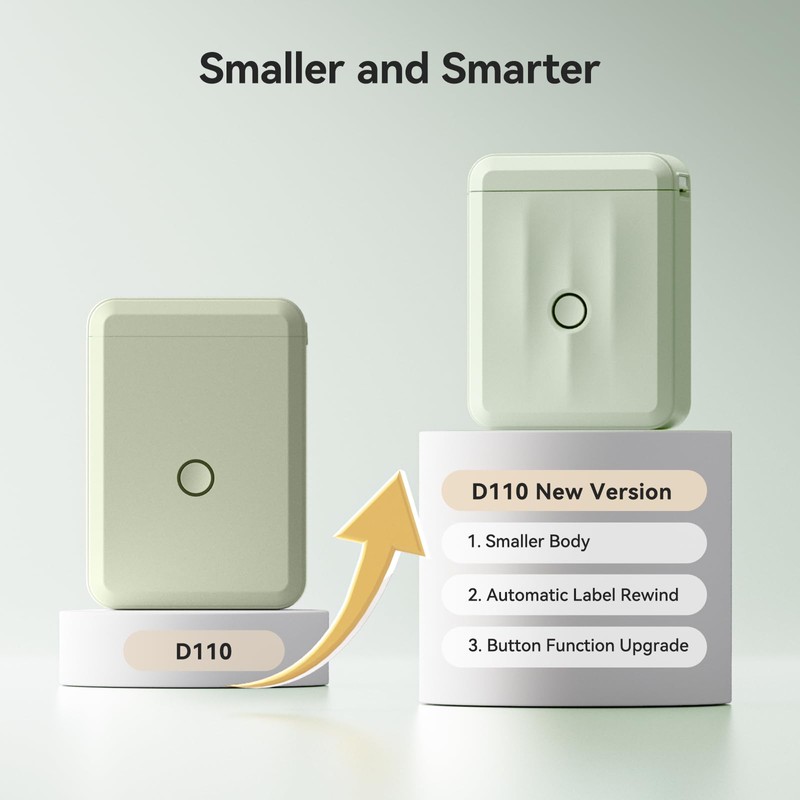 - New Upgraded --D110 New Upgraded mini bluetooth label maker machine is an new version of D110 label maker. It is smaller and smarter than D110 label maker. With Ultra-small body size (3.9* 3*1.2inchs), it only weighs 149g. The compact design of the mini D110 new version label machine allows it can be slipped into your pocket and print anytime and anywhere.It's widely used in home storage and organization, school and office file classification, and small business, such as jar stickers, food date, cosmetics, personal items, name tags, cable identification, price tags, jewelry labels, etc. Its also the perfect back-to-school supplies and home helper.