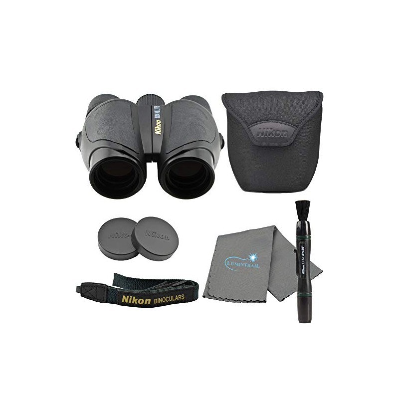 Nikon Travelite 8x25 Compact Binoculars, Black Bundle with Nikon Lens Pen and Lumintrail Cleaning Cloth
