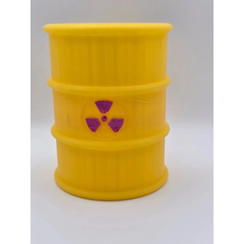 Add a distinctive touch to your workspace with this unique barrel-shaped pen holder featuring a yellow exterior and magenta radiation warning symbol design. Perfect for radiographers, nuclear medicine professionals, and science enthusiasts, this conversation-starting desk accessory combines practical storage with playful style. The sturdy plastic construction offers ample space for organizing pens, pencils, rulers, and other office supplies while maintaining a compact 4.0 x 4.0 x 5.0 inch footprint. The cylindrical design with its wide opening provides easy access to stored items, while the stable freestanding base prevents tipping. With a 20-fluid-ounce capacity and ability to handle up to 2 pounds of supplies, this holder keeps your desk organized while making a bold statement. The matte finish and detailed trifoil symbol create an authentic industrial look that's sure to spark interesting conversations. Whether used in a medical office, laboratory, or any workspace that could use a dose of personality, this functional novelty item transforms ordinary supply storage into an eye-catching display piece.