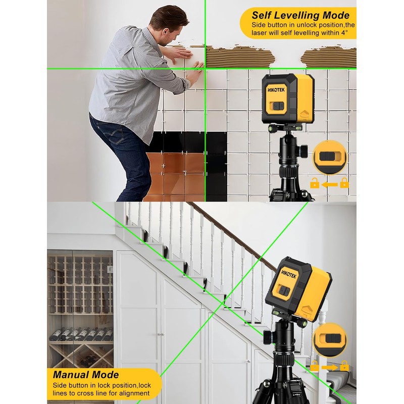 Nikotek Green Laser Level, 20m/65ft Cross Line Laser with Self-Leveling Green Beam, Carrying Pouch, 2 AA Batteries, for Home Decoration/DIY/Construction Site etc
