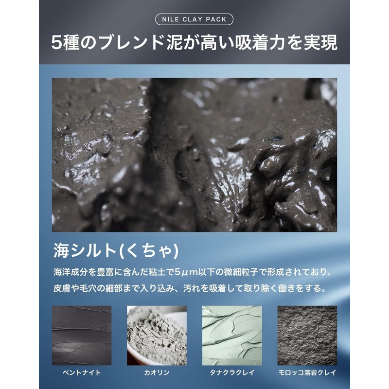 - (Mud Adsorption Effects and Achieves Skin) 4 types of mud ingredients are made with dirt that contains a lot of minerals that are harvested for skin care. The use of nutrient mud softens the skin and removes gothly stains from your pores after preparing for easy staining skin