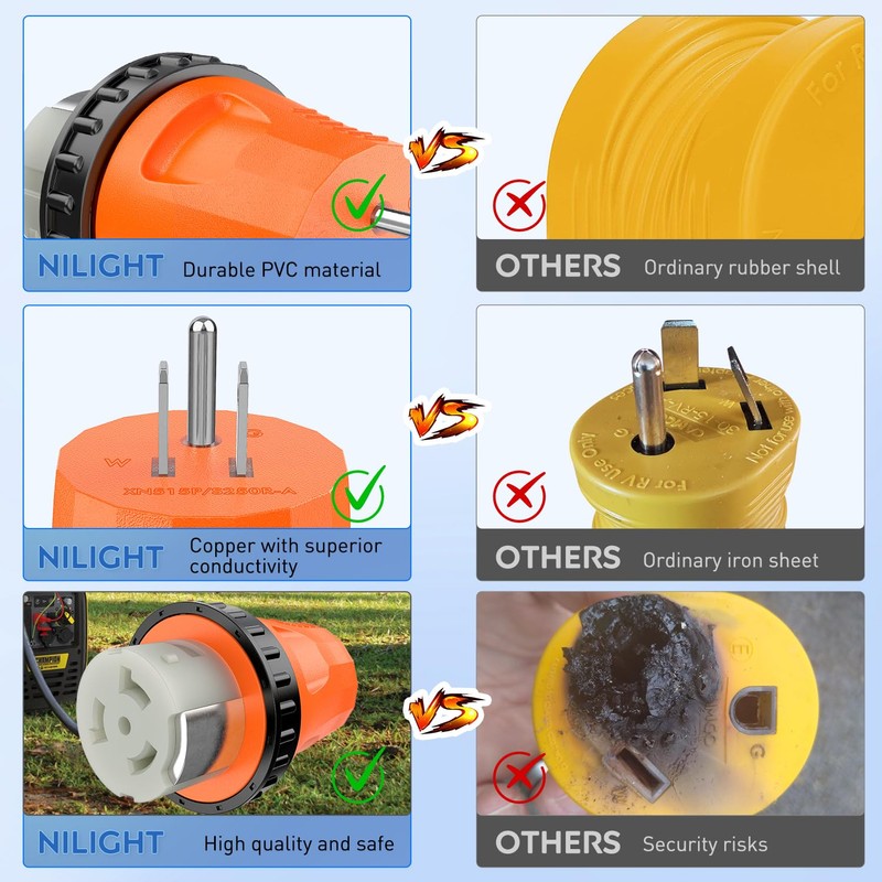 Nilight 15A to 50A RV Power Adapter 110 Volt Twist Locking Connector 5-15P SS...