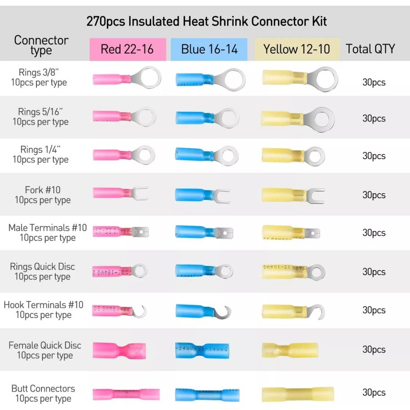 - 【Multifunctional Connector Kit】: This heat shrink connector is compatible with a variety of applicant. For example car, motor, vehicle, boat, and other scientific projects.