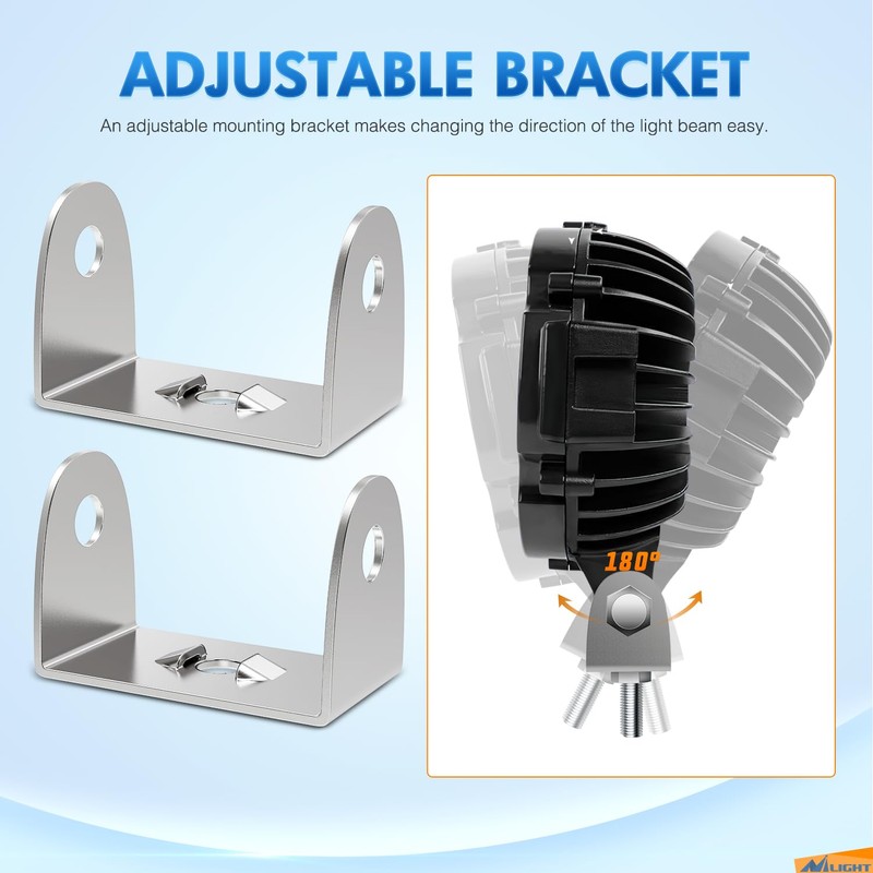 - Easy To Install: Mounting the brackets on your LED light and tighten anti-loose screws, need not worry about fall down and shaking
