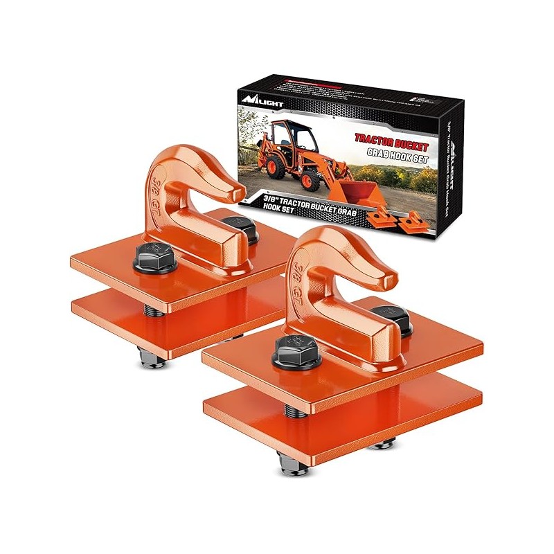 Nilight 2PCS Tractor Bucket Grab Hook 3/8'' Heavy Duty Drop Forged Steel Bolt On Zinc-Coated Cast Tow Max 15000 LBS Orange