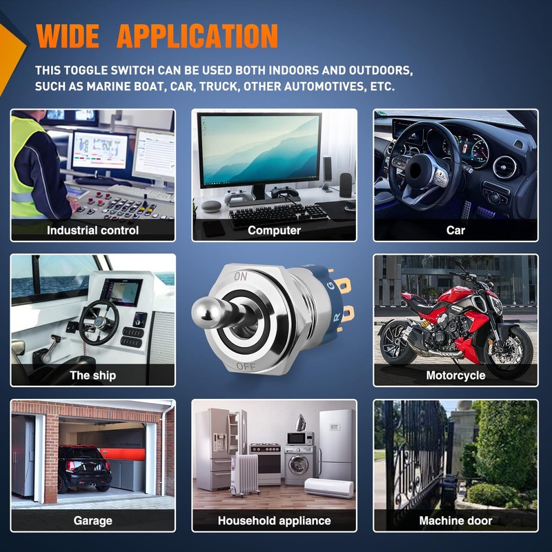 - Widely Application: Our switch can be used as a switch for various additional electric equipment, inside and outside the car. AC or DC enviroment. It is widely used to control LEDs and circuits on Car, RV, Marine Boats, Trucks, Households, Coffee Machine, Industrial Equipment and Medical Equipment. Can also use these on water dispenser, running machine, electromobile and other household appliances modification