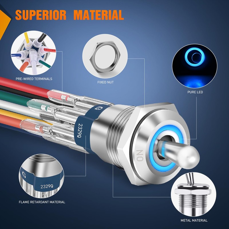 - Safety Protection: This truck rocker switch control uses copper-plated silver contacts, has good electrical conductivity, and uses high-quality materials and flame-retardant casing for high safety. IP67 Waterproof toggle switch is protected against dust and low-pressure water jets, can work greatly even wet by rain or splashed water outdoors and indoors.