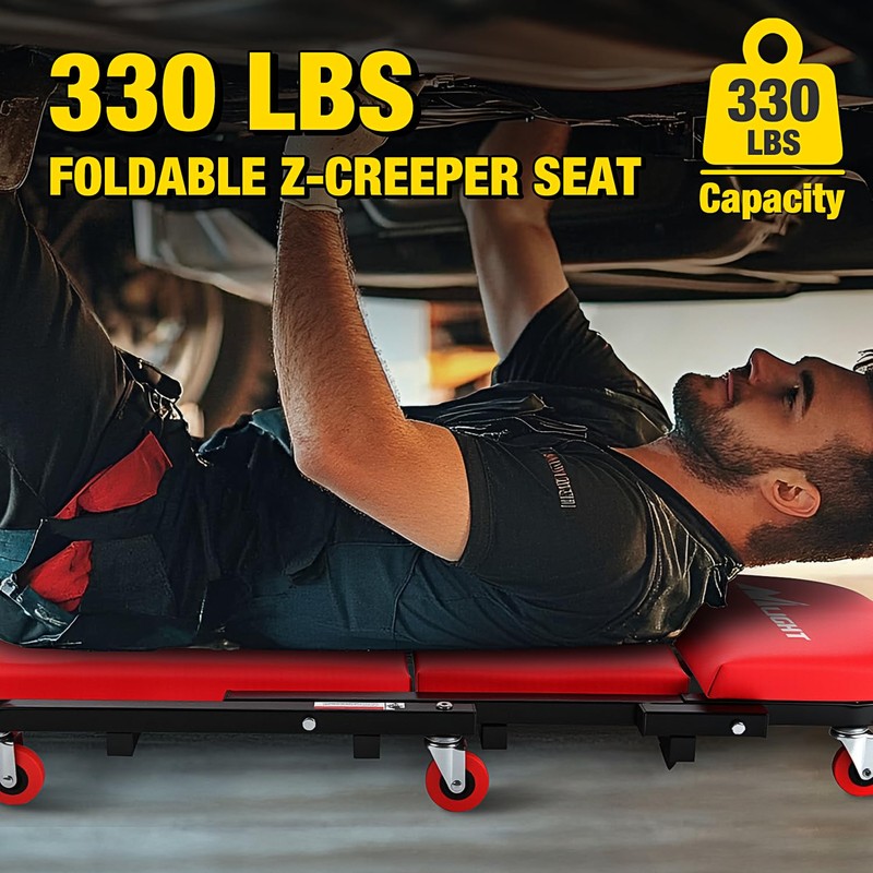 Nilight 40" Z Creeper - 2-in-1 Folding Rolling Mechanic Seat, 40 inches Adjustable Lay-Down or Sit Garage Chair, 330 lbs Capacity, Red Black