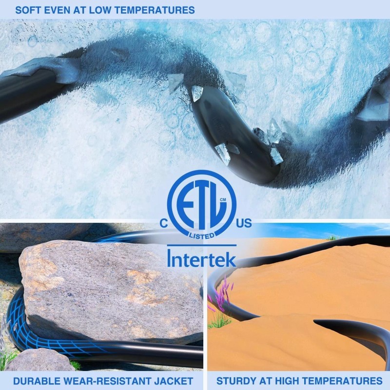 • Weather Resistance: The cord is coated with a heavy-duty flame retardant, heat resilient PVC sheath that serves as protection from the outdoor elements. Protect the wire from wind, rain, snow, soil, and rocks for long-lasting durability. Weather resistant thermoplastic jacket that performs under extreme weather conditions.