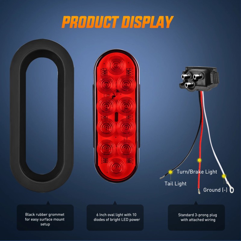 Nilight 6Inch Oval Trailer Tail Light 6PCS Red White 10LED IP67 Waterproof Light