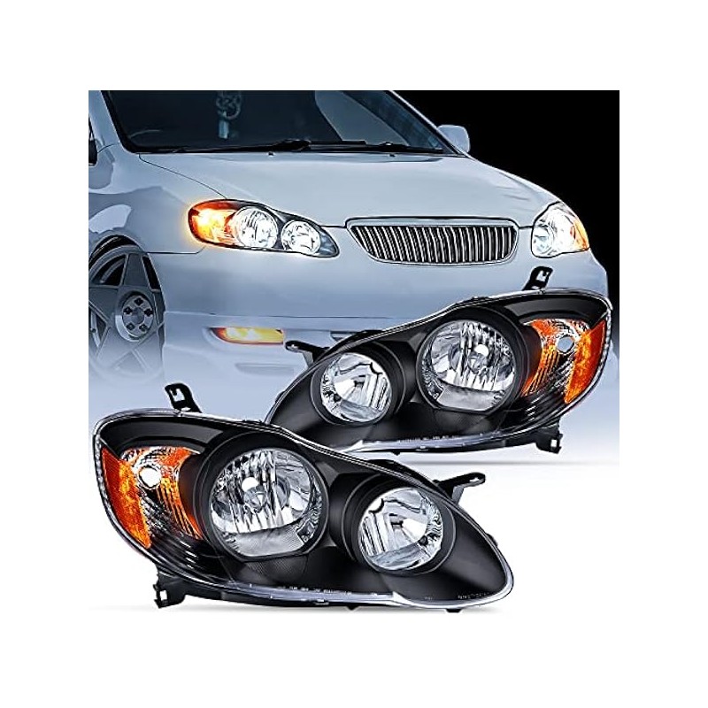 Nilight Headlight Assembly for 2003 2004 2005 2006 2007 2008 Toyota Corolla Headlamps Replacement Black Housing Amber Reflector Driver and Passenger Side