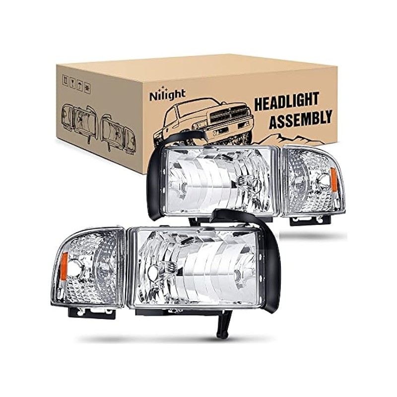 Nilight Headlights Replacement Assembly kit Compatible with 1994 1995 1996 1997 1998 1999 2000 2001 2002 Ram 1500 2500 3500 Chrome Replacement,2 Pack,Driver and Passenger Set