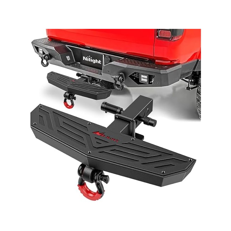 Nilight Hitch Step 2 Inch Receiver Universal Trailer Hitch Step Armor with Anti-Theft D-Ring Shackle Hitch Lock Stabilizer Anti-Slip Design Rear Bumper Guard for Pickups Trucks Vans SUVs ATVs