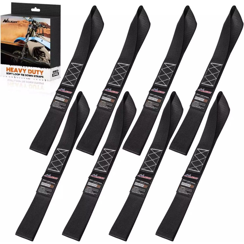 Multi-application: These soft loop are perfect for securing cargo and moving equipment on your trailer or truck, such as motorcycle, ATV, UTV, kayak, paddle board, dirtbike, lawnmowers.