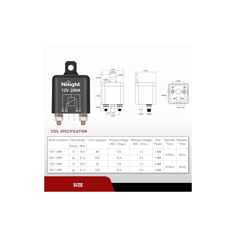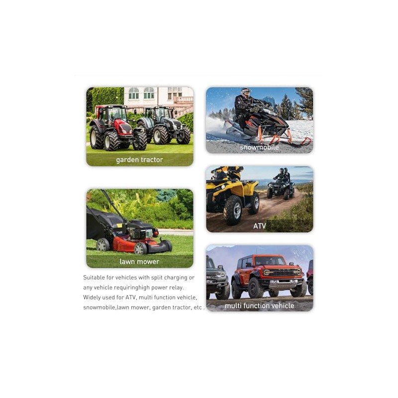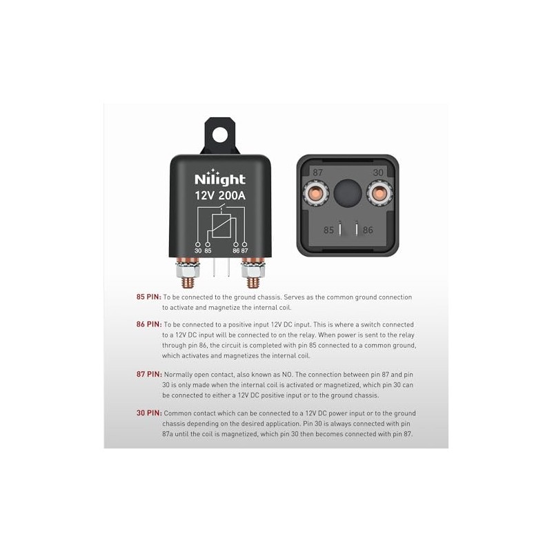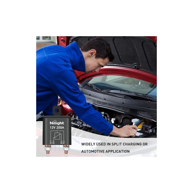 - Type: 4Pin Relay, 12VDC (14V Max) , SPST (Single Pole Single Throw) Relay with 200A High Switching Capability. Perfect for Split Charging or Various Automotive vehicles such as cars, trucks, RVs, boats, Campers, RVs and other vehicles needing a high power.