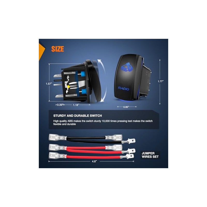 - Package Includes: 1X 5 pin rocker switch, 1X jumper wires set, 1X diagram