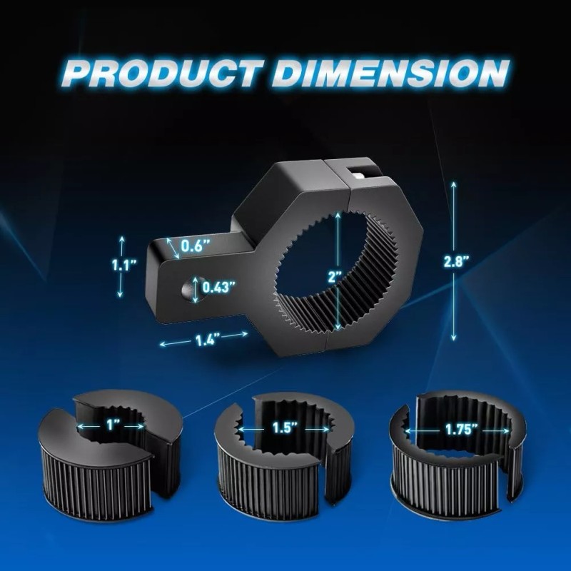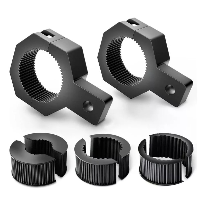 El kit de montaje de abrazadera de barra viene con inserciones de goma antideslizantes con una gama más amplia de tamaños; ayuda a amortiguar las vibraciones y protege tu barra de toro de raspar.