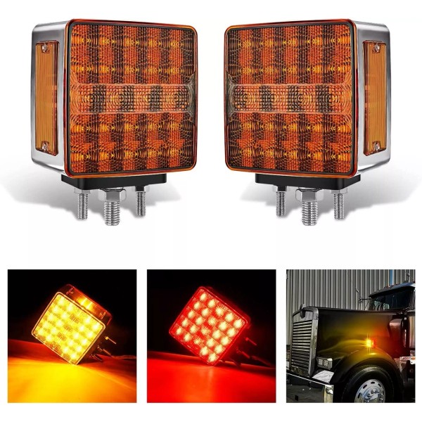 Nilight Square Double Face Fender Pedestal Light 2PCS 52LED Amber Red Tail Light