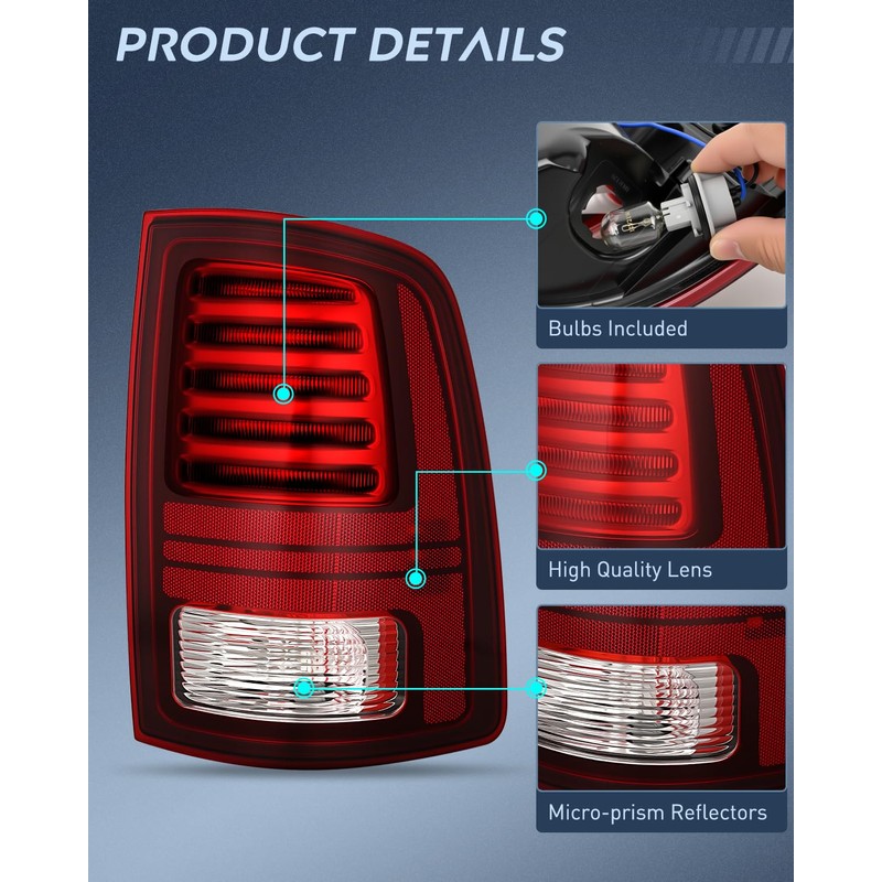 - Compatibility: The taillight assemblies are compatible with 2013-2018 Dodge Ram 1500 Models with LED Tail Lights; 2014-2018 Dodge Ram 2500 3500 Models with LED Tail Lights. NOTE: NOT COMPATIBLE WITH FACTORY HALOGEN TAILLIGHT MODELS. Replaces OE Number: 68093081AB, 68093081AC. Please confirm the vehicle fitment before ordering