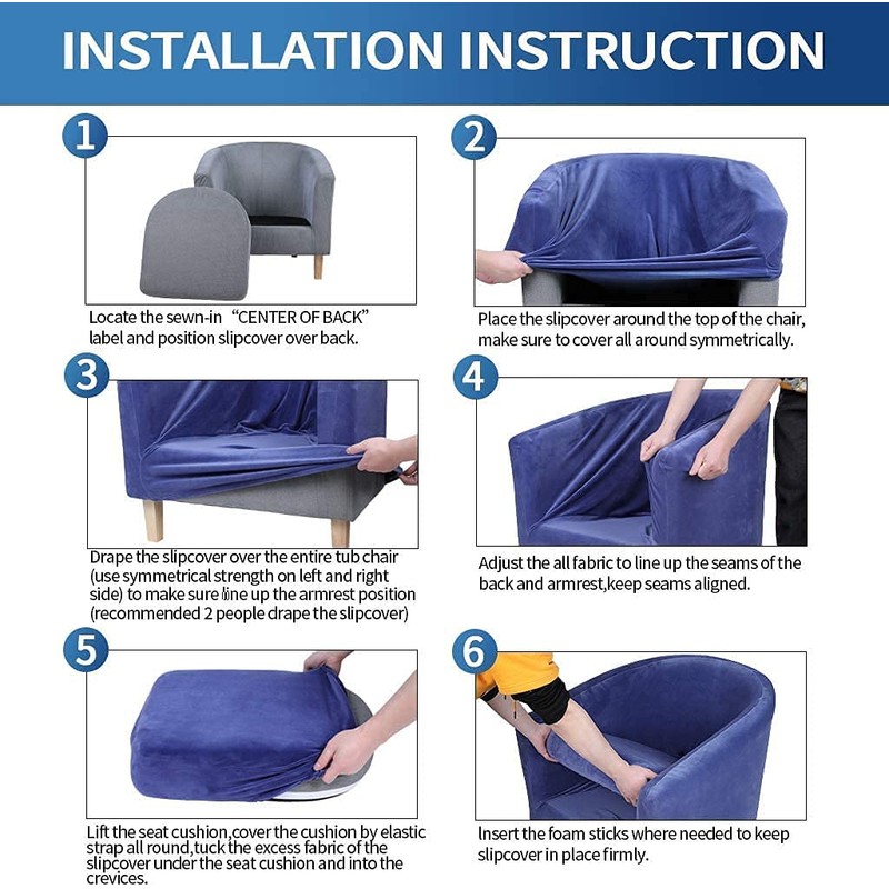 This club chair cover is designed with elastic bands for easier installation. You can also stuff the excess fabric into the gap of the chair, and fix it with the non-slip stick that we give away.