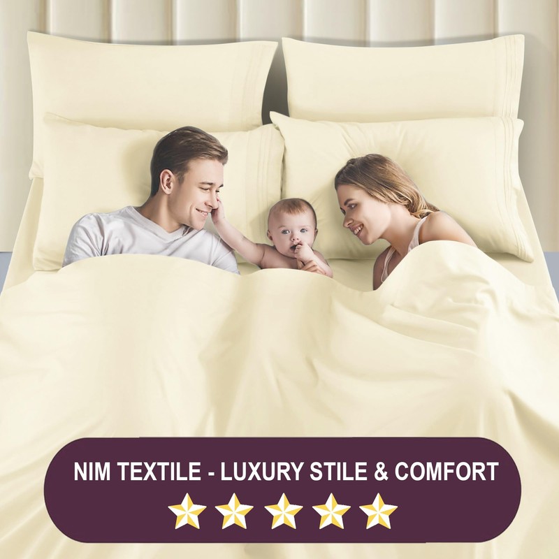 NIM TEXTILE Luxury Sheets 1600 TC Softness Deep Pocket 3pc Fitted Sheets Set - 1 Fitted Sheet and 2 Pillowcases - Milano Collection Bedding - Cream, Queen
