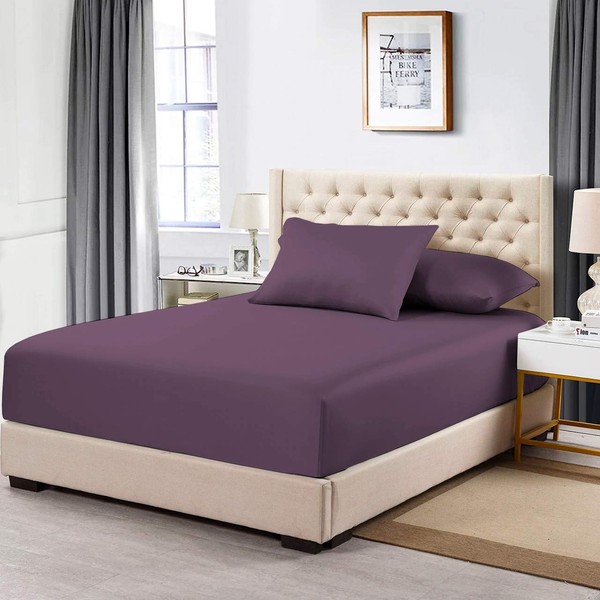 NIM TEXTILE Luxury Sheets 1600 TC Softness Deep Pocket 3pc Fitted Sheets Set - 1 Fitted Sheet and 2 Pillowcases - Milano Collection Bedding - Eggplant, Queen