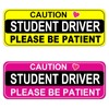 NIMONA Student Driver Magnet for Car - 2 Pack Funny Please Be Patient Removable Magnetic Bumper Sticker Set - Reflective New Driver Safety Sign - Weather-Resistant - 10 x 4 inch (Yellow and Pink)