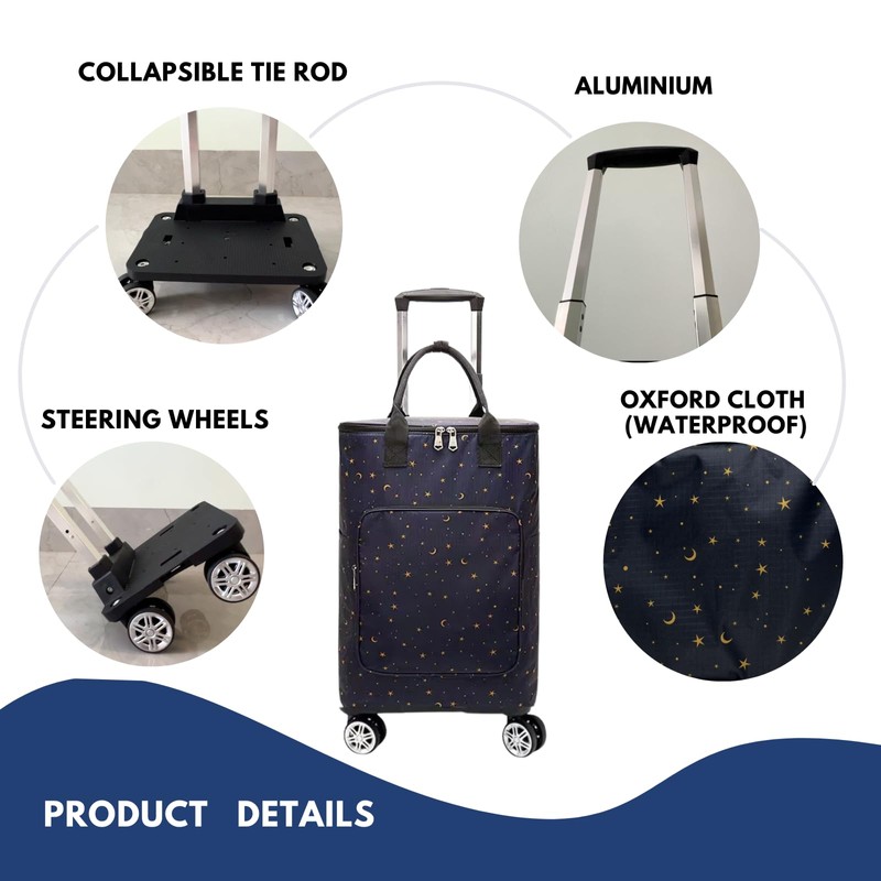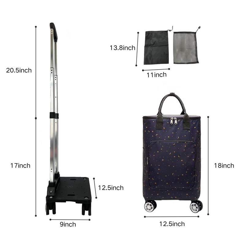 Nimsayhexg Foldable Aluminum Alloy Shopping Trolley with Insulated Bag, Lightweight and Easy for Shopping, Outdoor Travel & Office Usey. (Starry Sky)