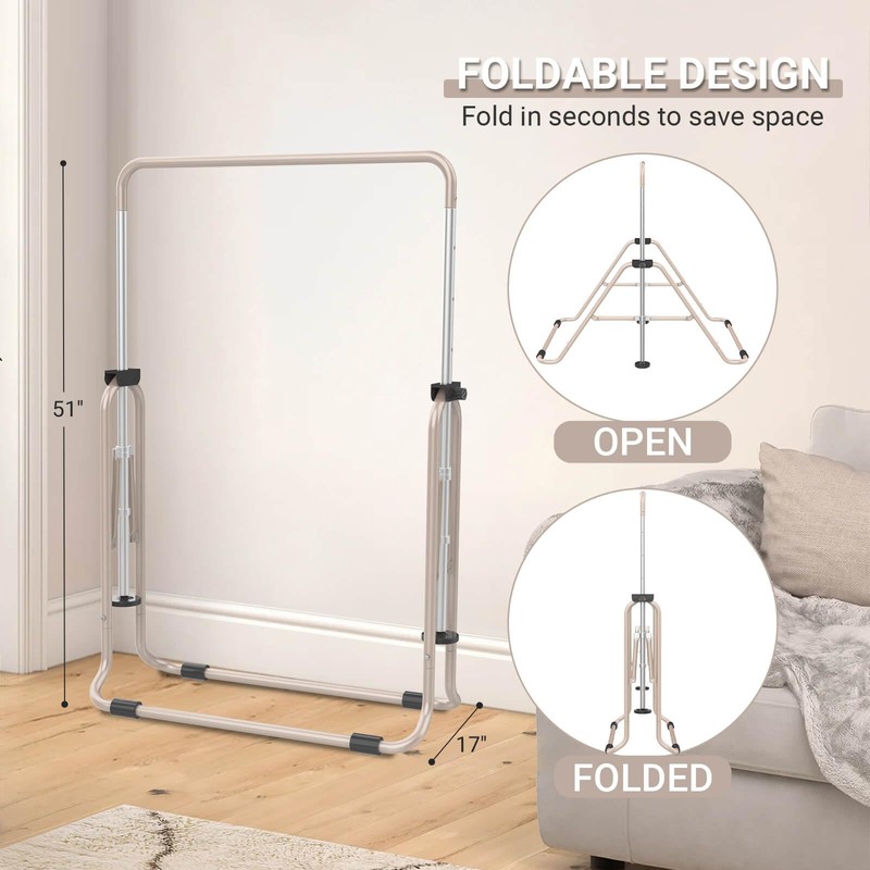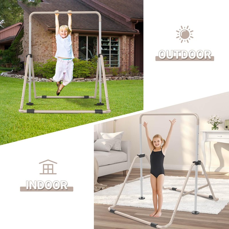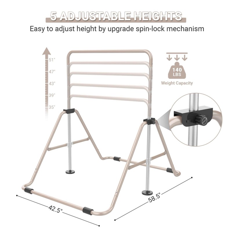 Nimsqury Foldable Gymnastics Bar, 5-Height Adjustable Gymnastic Bars for Kids at Home,Robust & Stable for Indoor/Outdoor Using,Weight Limit 140LBS (Beige)