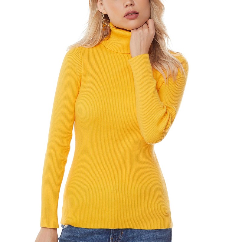nine bull Womens Solid Basic Stretch Turtleneck Pullover Knit Sweater Yellow