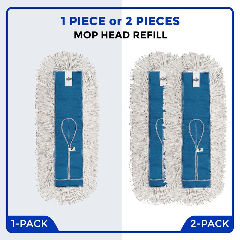 Nine Forty 24" Premium Cotton Dust Mop Kit - Heavy Duty Mop Head with Handle for Industrial, Commercial, and Residential Cleaning - Dry Floor Duster for Hardwood Surfaces - White