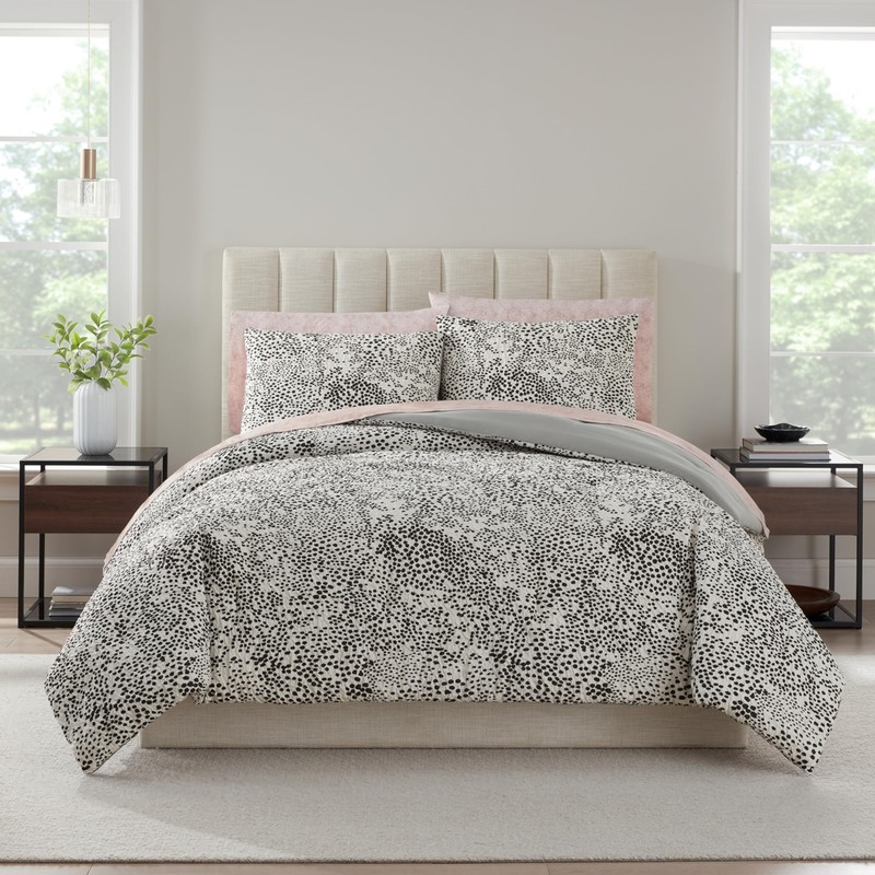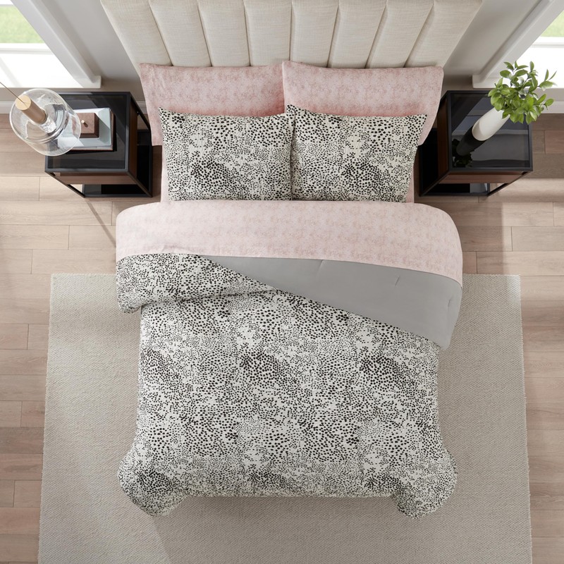 Nine West Layla 7 Piece Leopard Printed Texture Bedding Set, Luxurious All Season Bedding Including Comforter, Sheets, Pillow Shams & Cases, Full, Black/White