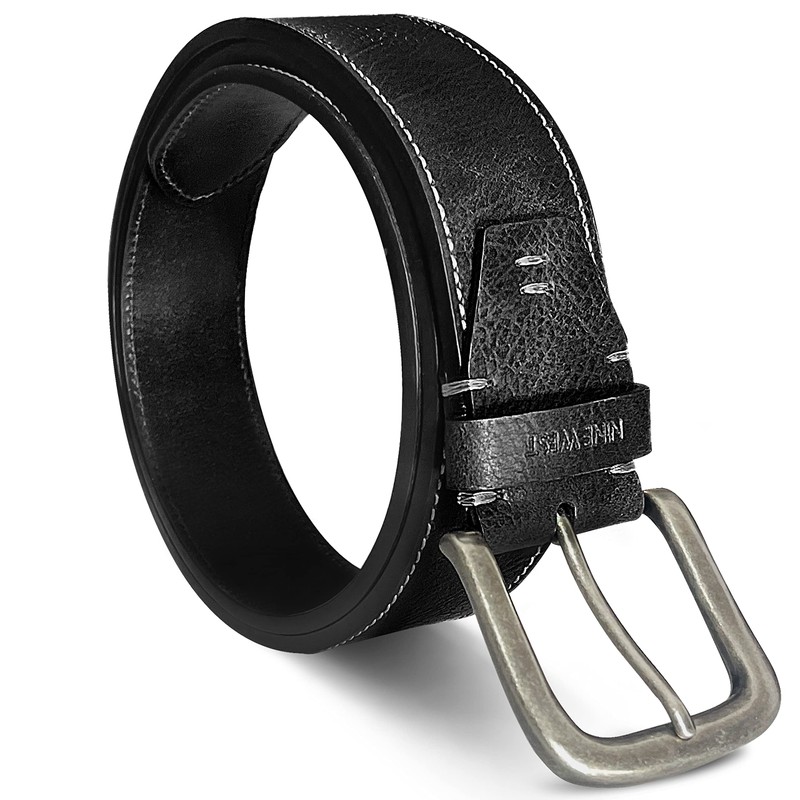 Nine West Mens Belt Vegan Leather Regular Dress Casual Everyday Belt 38mm Wide, Hamburg Black Belt Designed in the USA, S