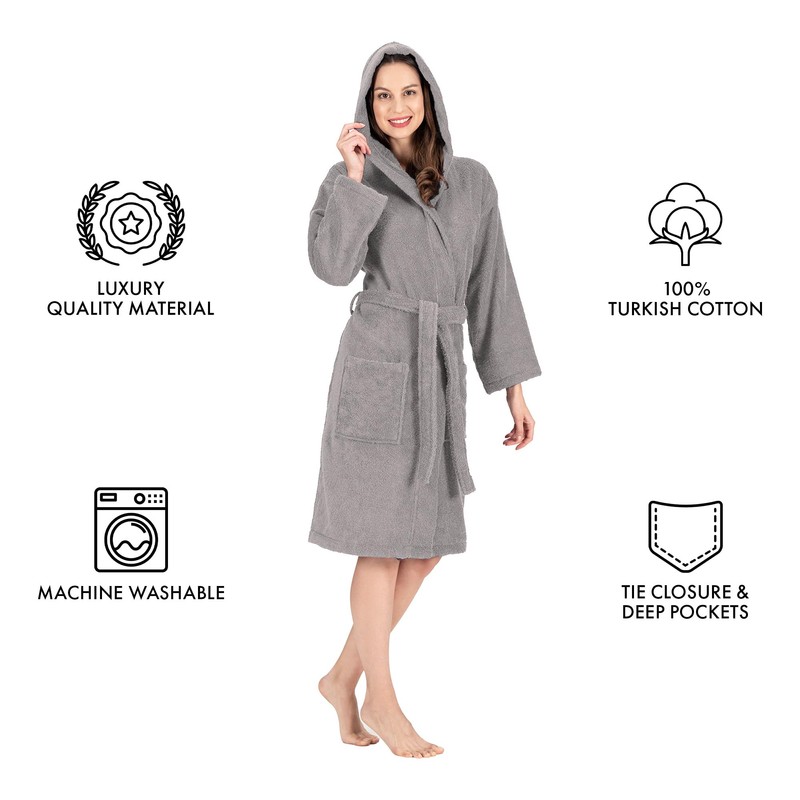 - 𝐏𝐫𝐞𝐦𝐢𝐮𝐦 𝐌𝐚𝐭𝐞𝐫𝐢𝐚𝐥: Crafted from premium 100% Turkish cotton, waffle knit, and plush fabrics, our hooded bathrobes offer superior quality and durability. Whether you're looking for a fluffy robe to keep you warm or a lightweight bathrobe for women after a shower, our collection promises long-lasting comfort and style.