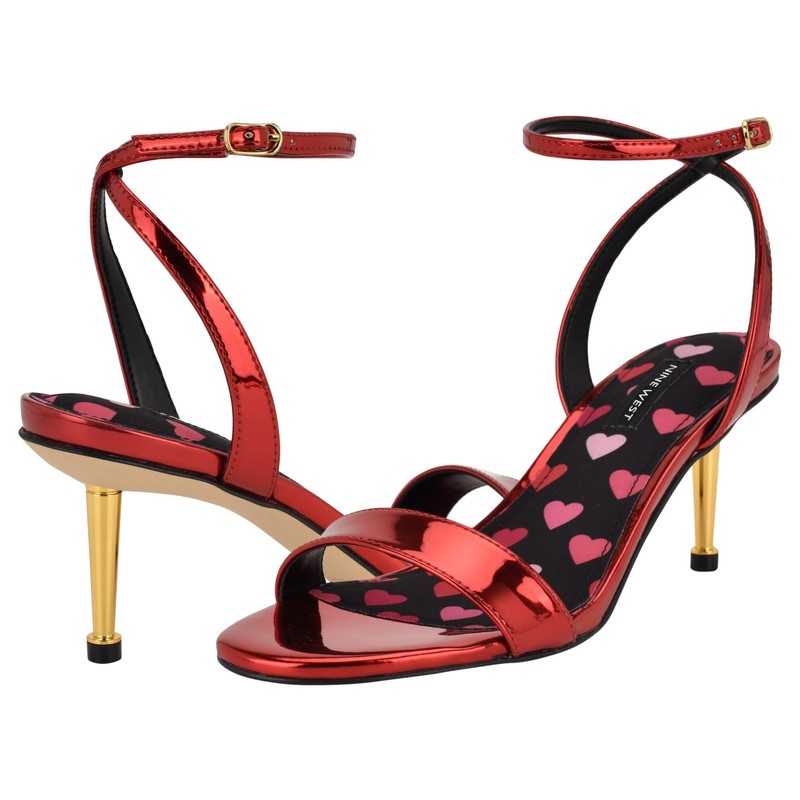 Nine West Women's Anny Heeled Sandal, Red Mirror Metallic 610, 8.5