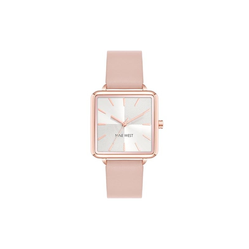 - Silver-tone textured dial with rose gold-tone hands and markers