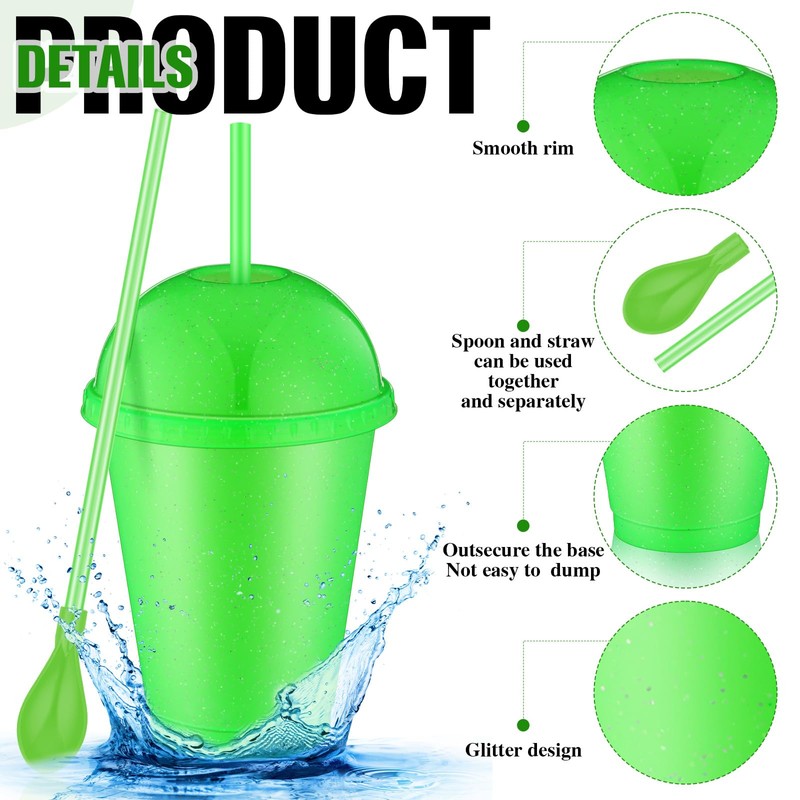 - A Bundle of Fun: indulge in a delightful drinking experience with our ample pack of 6 slushy cups, accompanied by detachable lively colored spoon straws; This allows sufficient quantity for you or to share with others, and make each drink a fun and engaging event