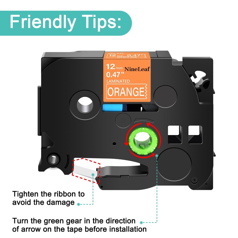 - NineLeaf Compatible for Brother P-touch TZe-635 TZe635 TZ-635 TZ635 Standard Laminated Label Tapes, Color:White on Orange,Length:8m(26.2ft),Width:12mm (1/2")