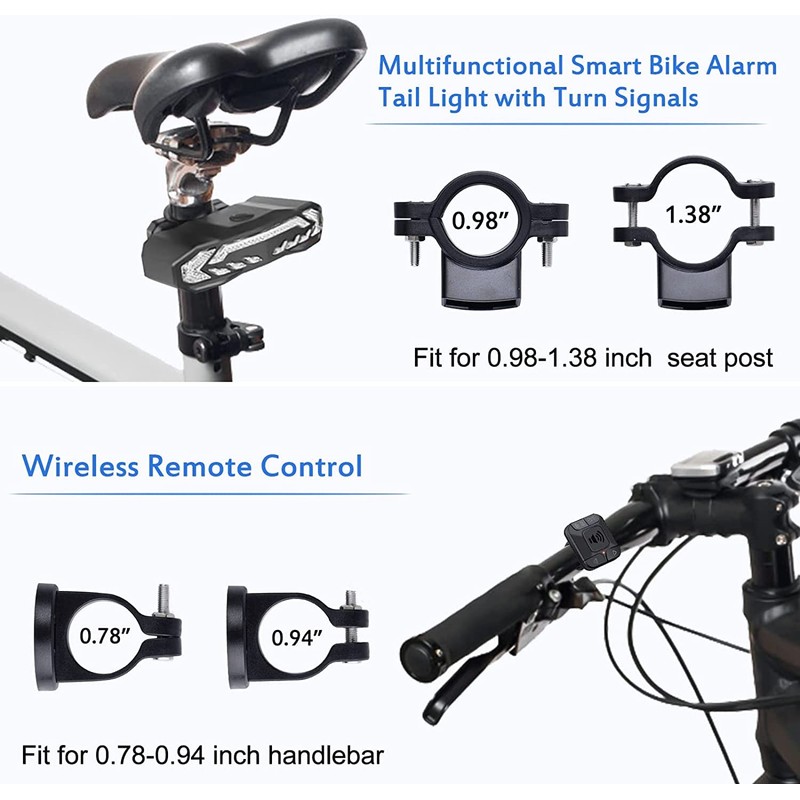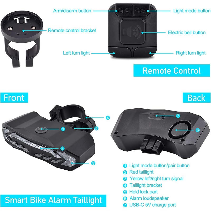 - 【Multi-Functional Integrated Design】This multi-functional anti-theft bike alarm tail light integrates brake light, turn signal, warning light, electric bell, and anti-theft alarm all in one. It alerts surrounding pedestrians and vehicles, providing all-around protection for the bike and rider’s safety—a practical bike accessory!