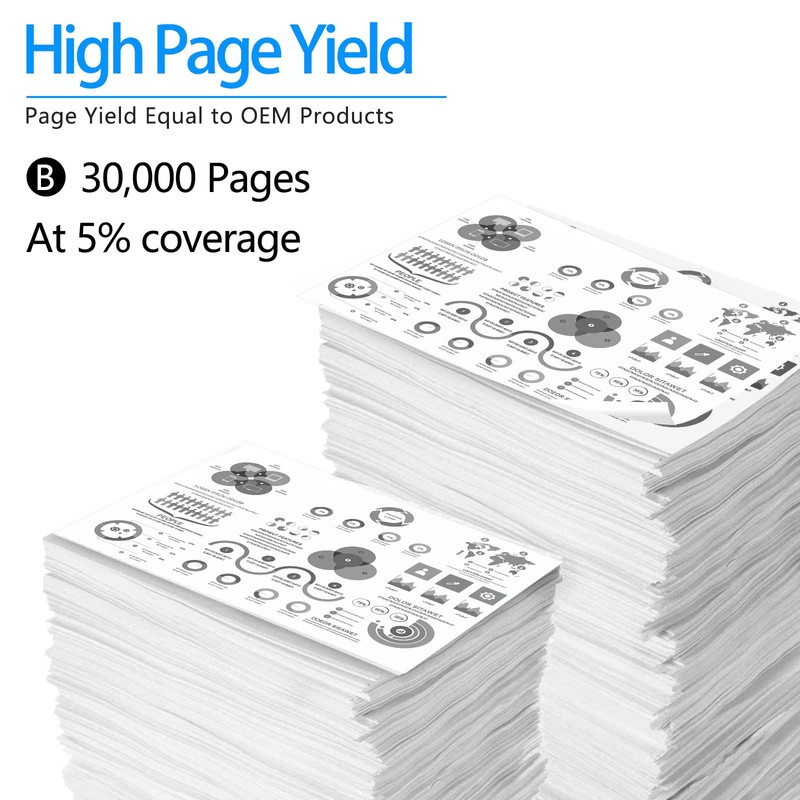 Page Yield: 30000 pages (at 5% coverage Letter A4). Actual toner yield varies with usage, graphics printed and environmental conditions