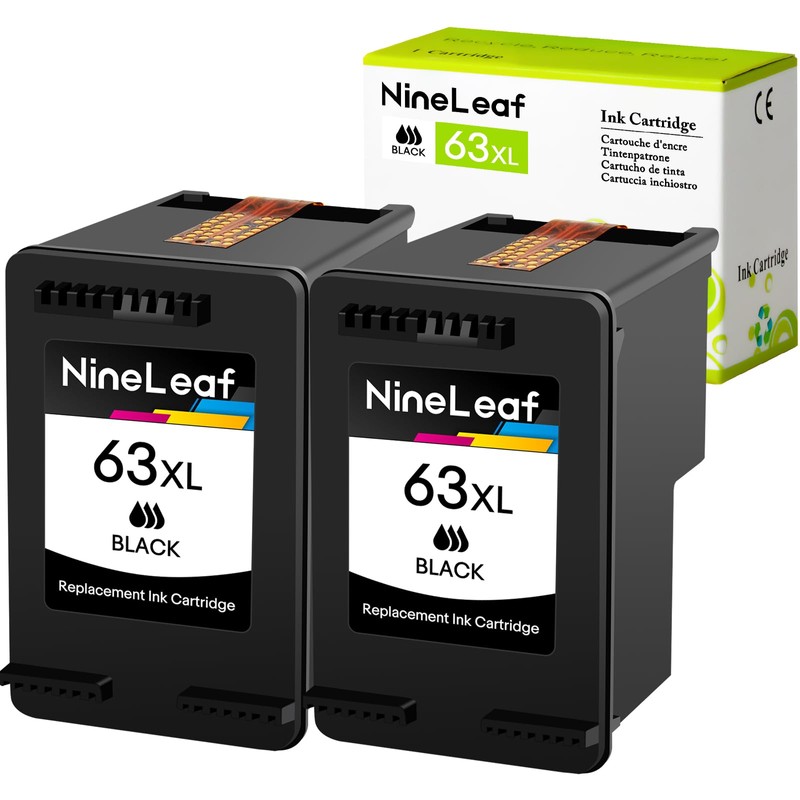 NineLeaf New Generation Remanufactured Ink Cartridges High Yield Compatible for HP 63XL 63 XL Envy 4512 4520 DeskJet 3632 2130 1110 1111 1112 2132 3630 3634 3637 OfficeJet 5255 5258 (Black,2 Pack)