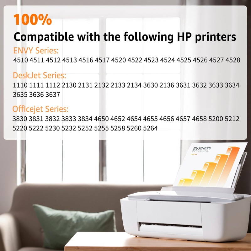 Compatible with: HP Envy 4510, Envy 4512, Envy 4516, Envy 4520, Envy 4522, DeskJet 1110, DeskJet 1111, DeskJet 1112, DeskJet 2130, DeskJet 2132, DeskJet 3630, DeskJet 3632, DeskJet 3633, DeskJet 3634, Deskjet 3636, Deskjet 3637, OfficeJet 3830, OfficeJet 3831, OfficeJet 3833, OfficeJet 4650, OfficeJet 4652, OfficeJet 4654, OfficeJet 4655. Matches with series: hp63 hp63xl hp4650 hp3630.