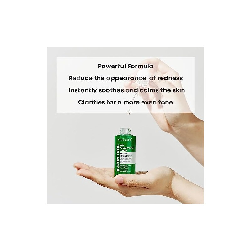 NINELESS-A-Control Azelaic Acid Serum 30ml  Srum Facial con 10 de cido Azelaico, Niacinamida, Centella Asitica y Filtrado de Caracol  Reduce...