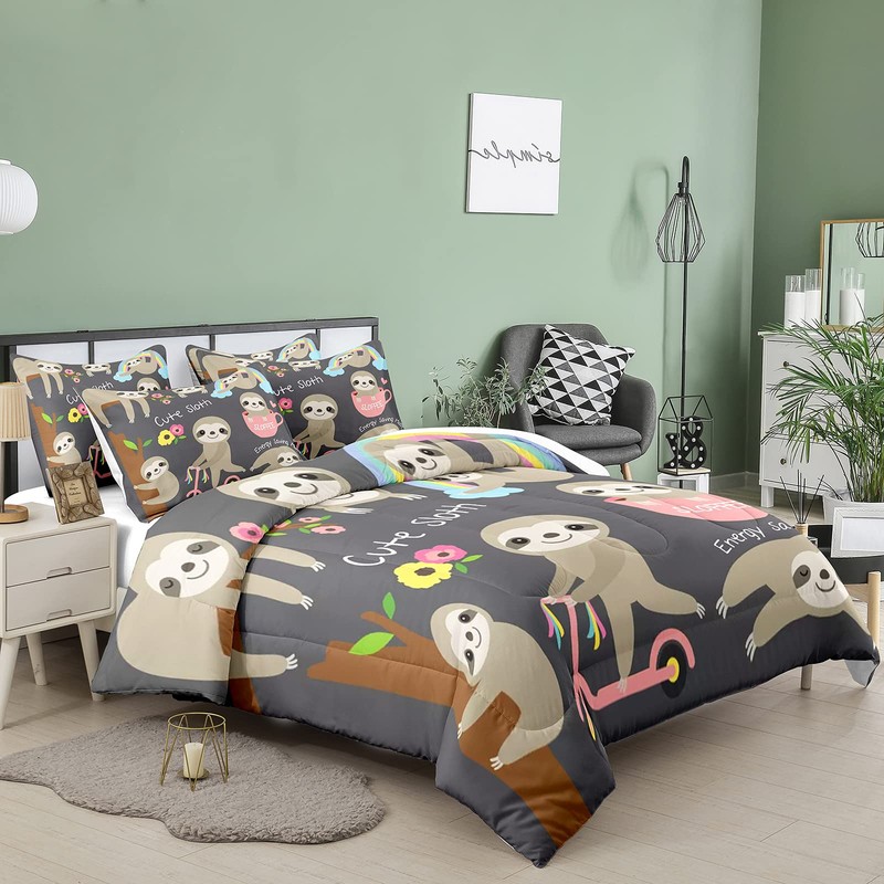 NINENINE Sloth Bedding Sets Full for Boys Girls Teens Cute Comforter Set Soft Microfiber Reversible Quilt with 2 Matching Pillowcases