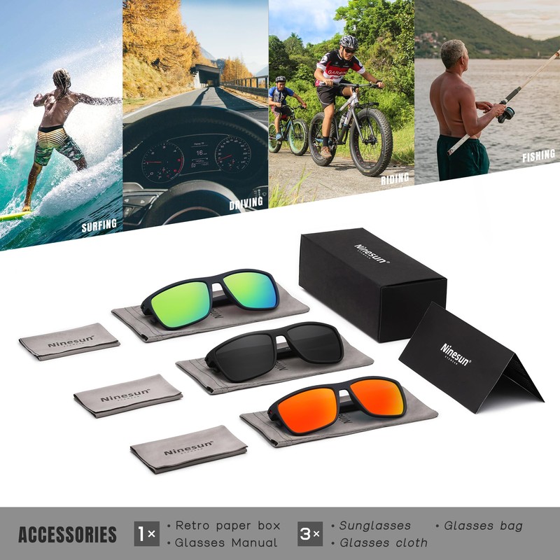 - ★ Packaging and brand customer service 👍 3 classic polarized sunglasses, 3 glasses bags, 3 glasses cleaning cloths, 1 glasses instruction manual (English language not guaranteed), 1 vintage cardboard box. If you encounter product problems, all Ninesun customers can use our brand customer service for men's polarised sunglasses. We solve the problems immediately for you and provide lifetime support!